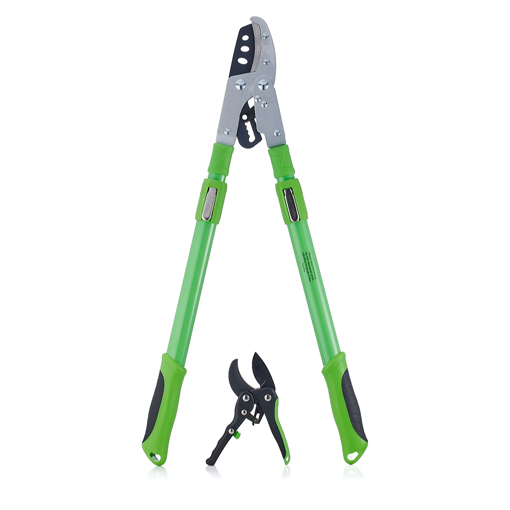 Tackle your garden with ease and precision using the Grumpy Gardener Telescopic Ratchet Lopper and Pruner Set. This two-piece set is designed to make light work of all your pruning and cutting tasks.